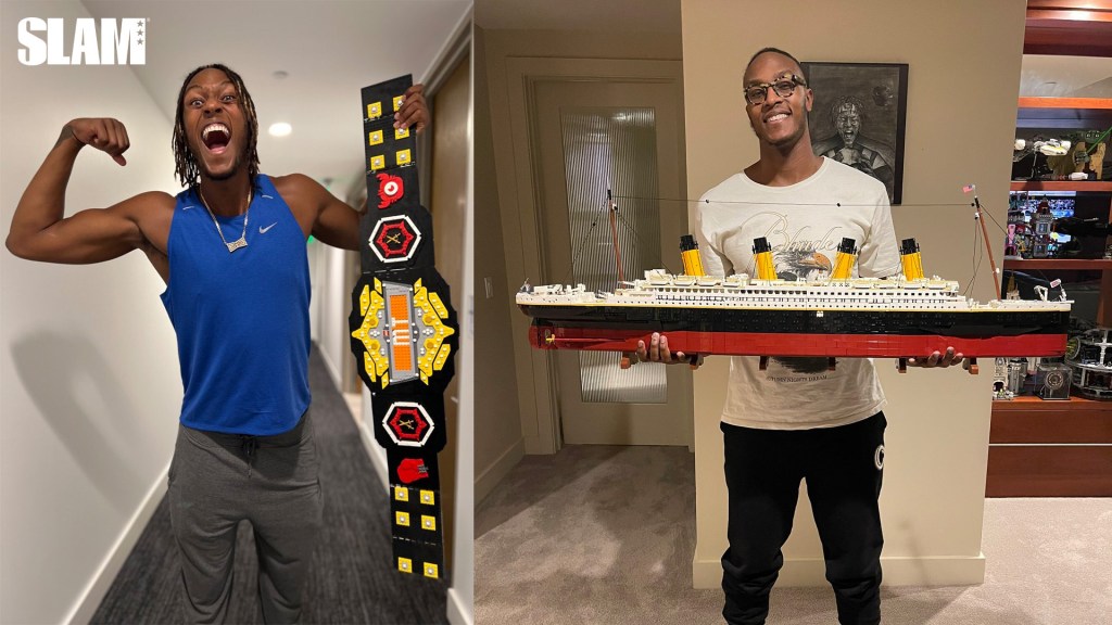 “I actually just finished this, the one from when I was a kid,” Turner says of the Lego NBA Set. “I just got it on eBay and I’m like man this is nostalgia, this is one of the first sets I ever had. I knocked that out within three-four hours, put all that together. I’ve got a little mini-figure of myself, I just take the legs off and put myself on the court and flick it back.”